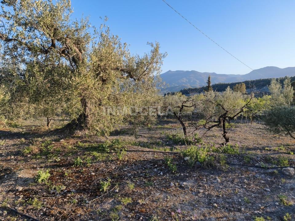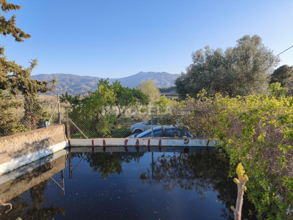 The property boasts a large plot of land surrounding the house, with 700 olive trees in full production, almond trees, and ample space for a vegetable garden, perfect for growing whatever you desire. It features a gated entrance providing privacy and security, as well as an irrigation pond that could be converted into a swimming pool, adapting to the new owner's needs.
